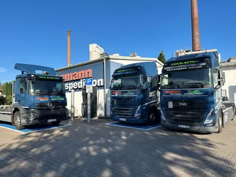 Gemeinsam mit der Spedition Hamann haben wir eine zukunftsweisende Ladeinfrastruktur für den elektrischen Schwerlastverkehr umgesetzt. Drei vollelektrische Lkw laden bereits heute zuverlässig am Standort und haben zusammen bisher 500.000 km zurückgelegt. Die passgenaue Komplettlösung verbindet hohe Ladeleistung, intelligentes Lastmanagement und flexible Erweiterungen – für den kontinuierlichen Ausbau zum vollelektrischen Fuhrpark.