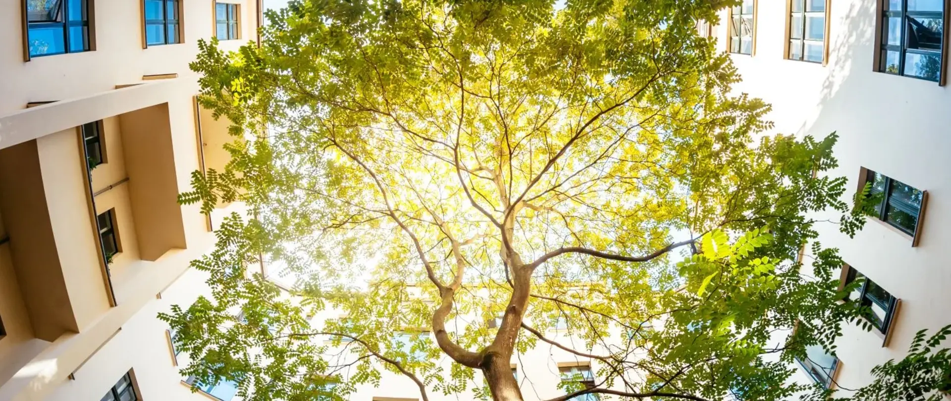 Eines unserer Ziele ist die Reduktion der CO2-Emmissionen im Betrieb und bei der Optimierung von Bestandsgebäuden als auch im Neubaubereich. Grundlage aller Aktivitäten ist im ersten Schritt eine Reduzierung des Raum- und Flächenbedarfs durch eine Verminderung der Anzahl von Präsenz- und Ankerarbeitsplätzen. Eine flexible Home-Office-Regelung sowie Desk-Sharing-Arbeitsplätze helfen uns dabei, eine niedrige Büroauslastung zu erzielen und dadurch das arbeitsplatzbedingte Verkehrsaufkommen unserer Mitarbeitenden zu reduzieren.